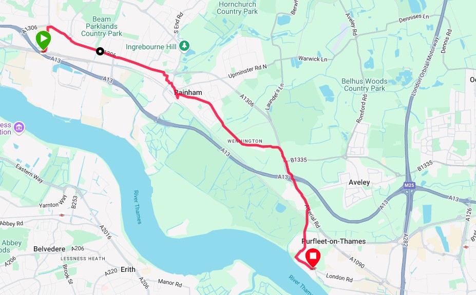 Monday 23 June 20258.77 miles in 01:28:27 at average speed of 4.51 mph