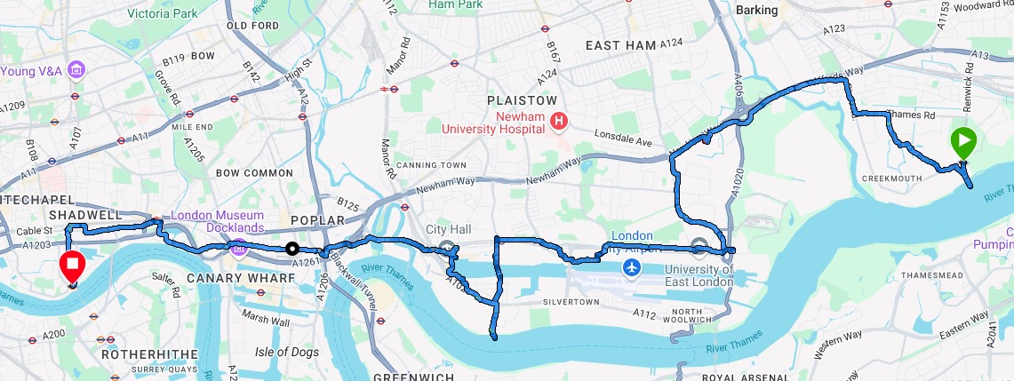 Beckton, Gallions Reach, Cyprus, Beckton Park, Royal Albert, Prince Regent, Custom House, Royal Victoria, East India, Blackwall, Westferry, Limehouse, Shadwell