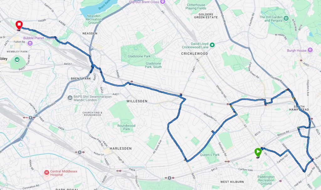 St John’s Wood, Swiss Cottage, Finchley Road, West Hampstead, Kilburn, Willesden Green, Dollis Hill, Neasden, Wembley Park