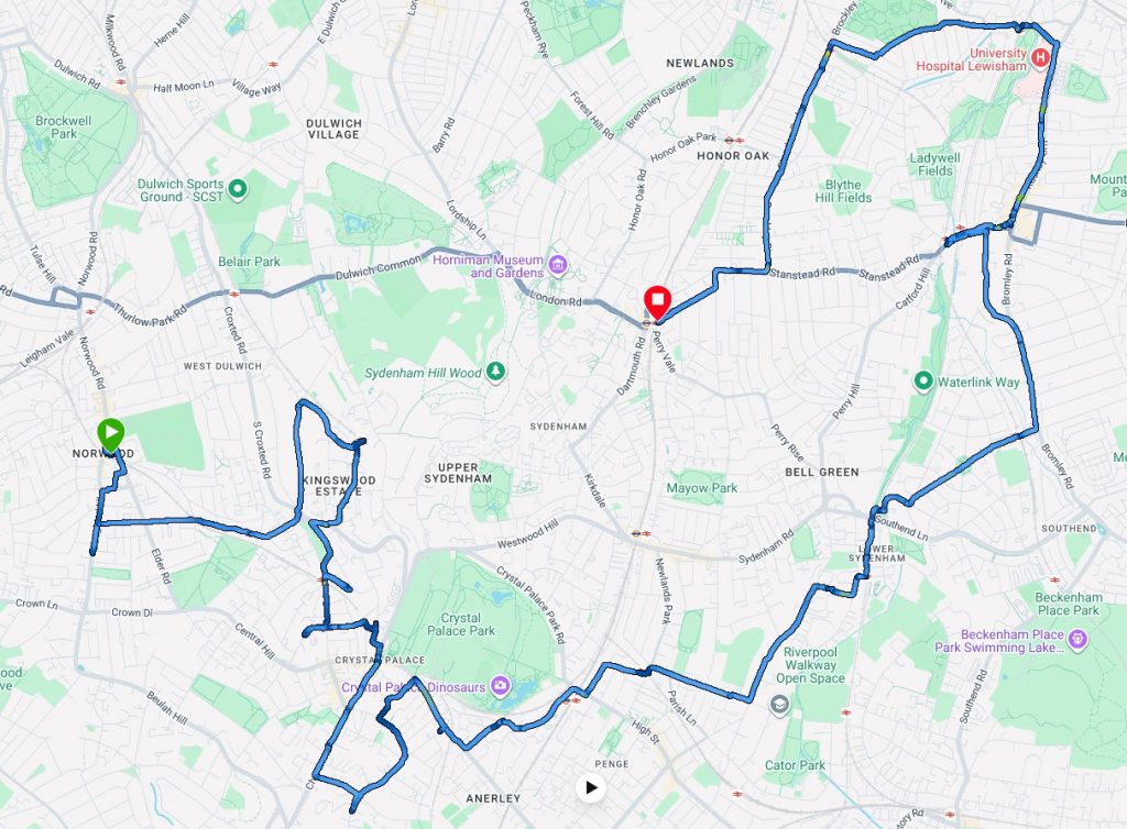 West Norwood, Sydenham Hill, Gipsy Hill, Penge East, Lower Sydenham, Bellingham, Catford, Catford Bridge, Ladywell, Crofton Park
