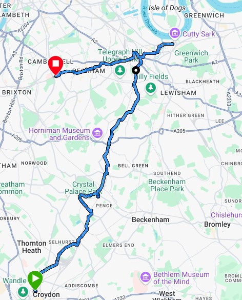 West Croydon, Norwood Junction, Anerley, Crystal Palace, Penge West, Sydenham, Forest Hill, Honor Oak Park, Brockley, New Cross, New Cross Gate, Queens Road Peckham, Peckham Rye, Denmark Hill